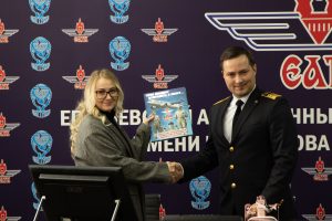 Так же руководитель Музея гражданской авиации — Хренова М.Н. презентовала почетным гостям постоянную экспозицию музея.
