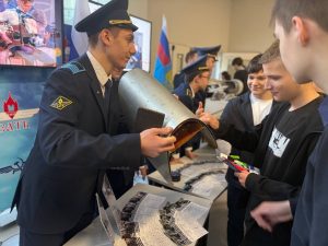 ⏩️Курсанты колледжа рассказали учащимся 9-11 классов о специальностях на которые будет проводиться набор в 2026 году, Показали на реальных экспонатах из какого материала начинали делать самолеты и из какого материала их изготавливают сейчас. На выставочной экспозиции колледжа, так же были представлены пульты управления системами, самолетная документация и многое другое.